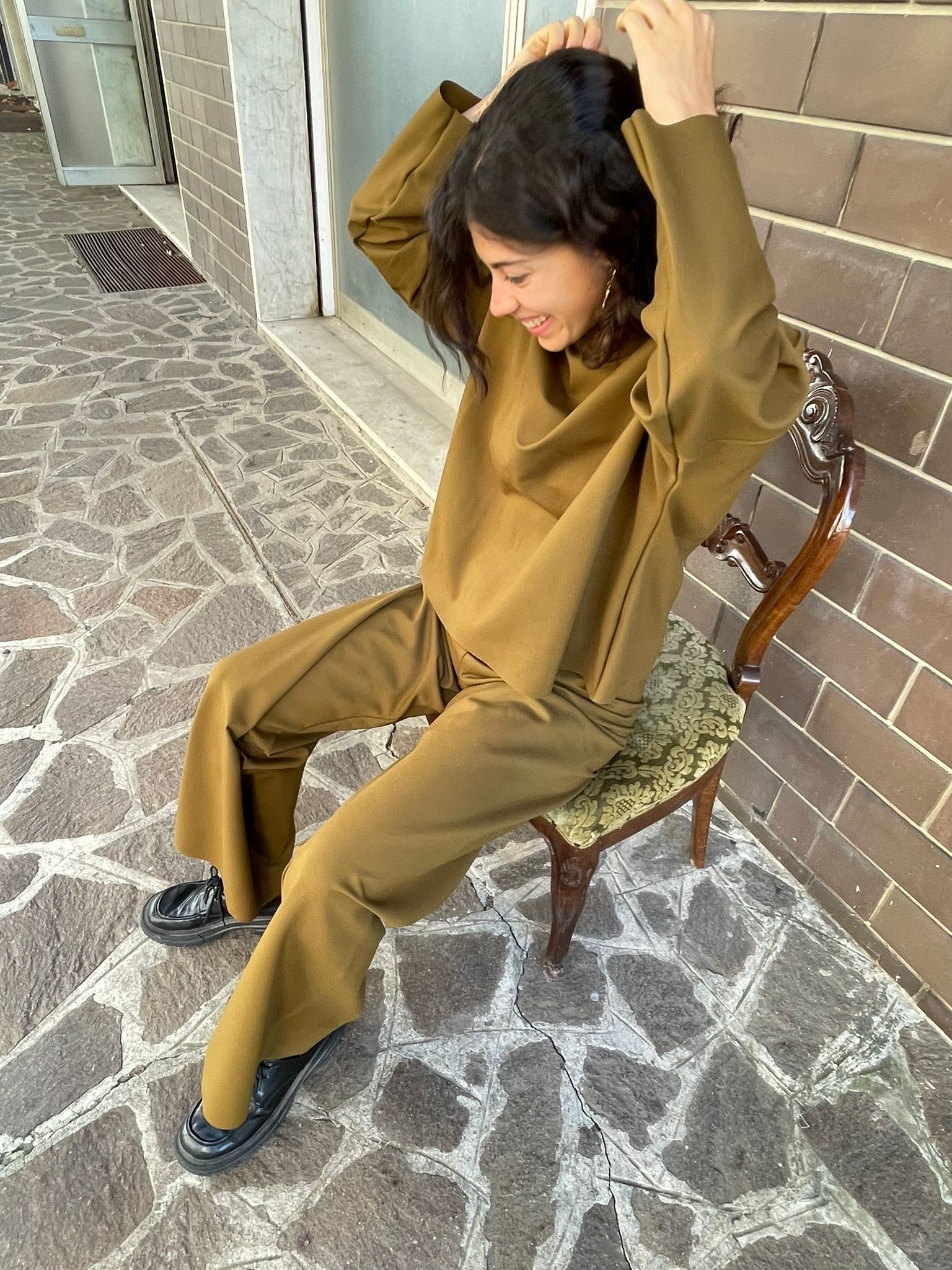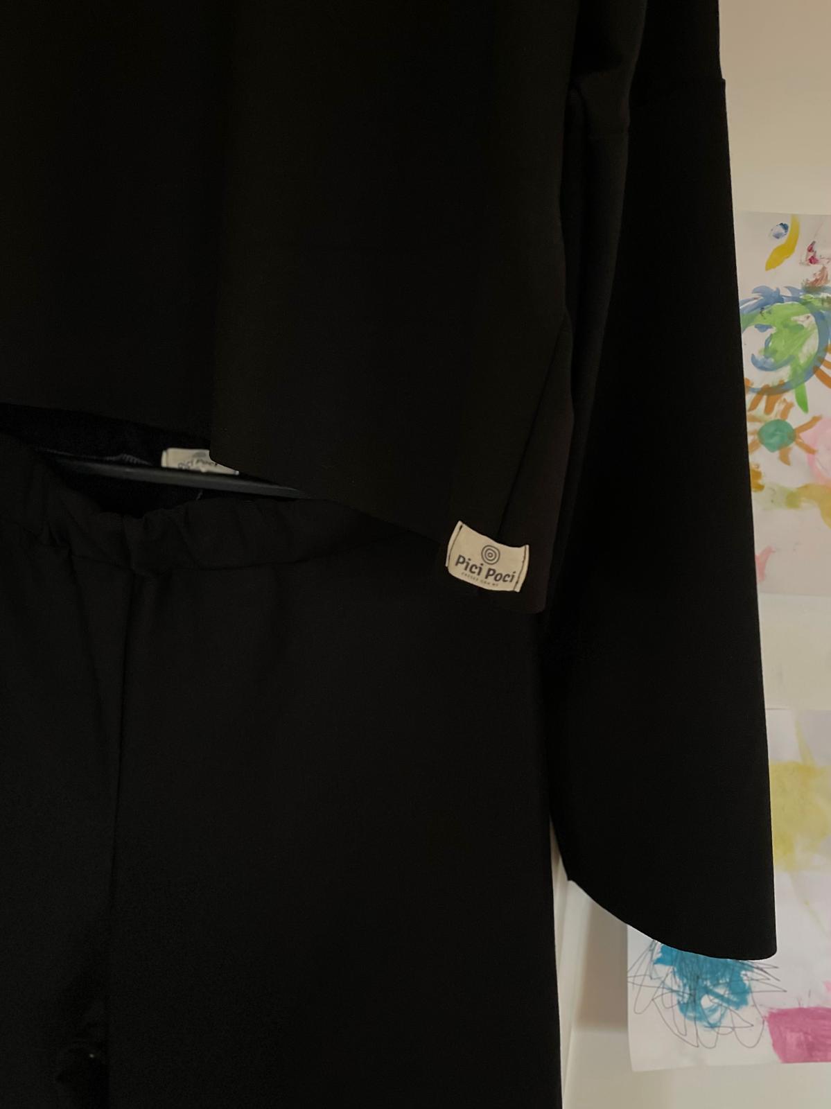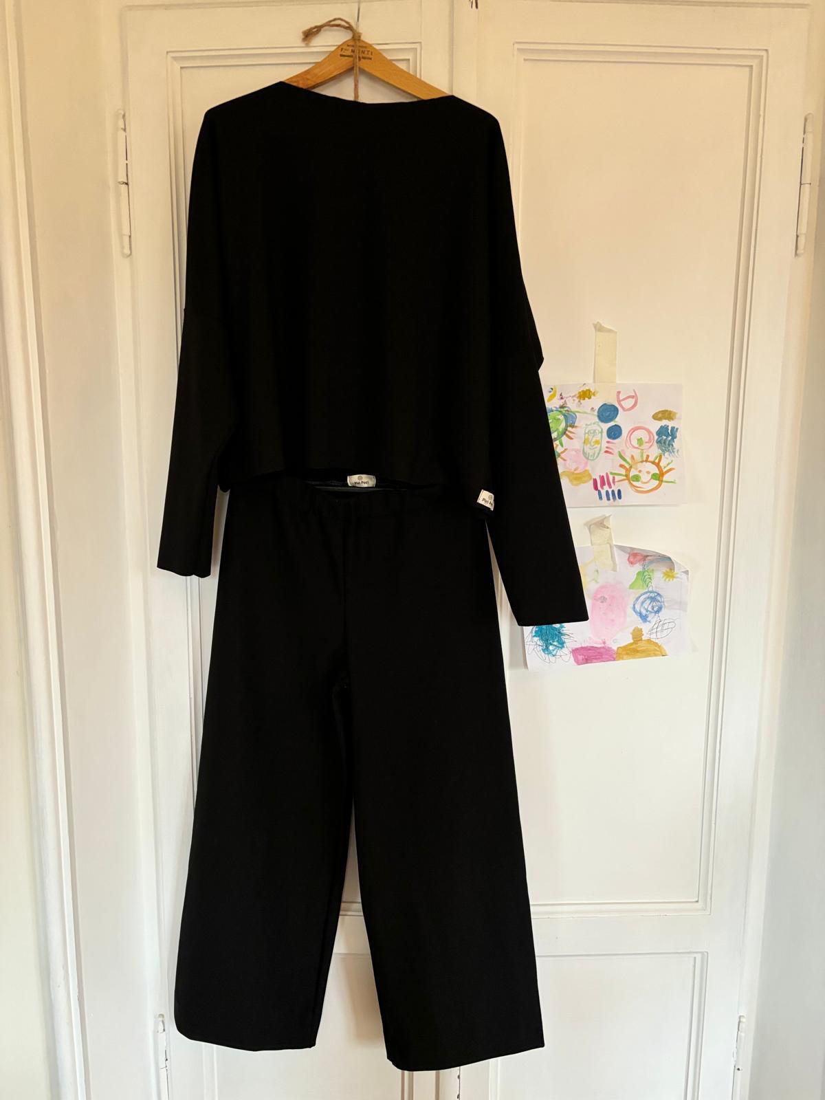 Un completo nero Maglia e Pantaloni Oversize, dalle linee essenziali ed eleganti, ma pratico ed estremamente comodo.