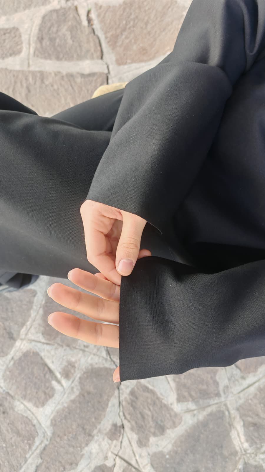 In foto: Cotone nero, leggermente elasticizzato.