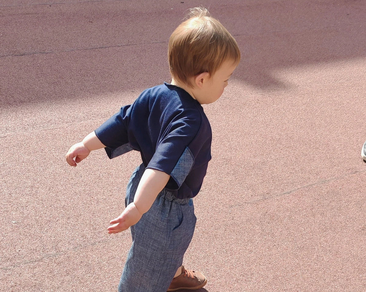 Maglietta a maniche corte disegnata pensando a una piccola persona che cresce e alle esigenze della sua età.