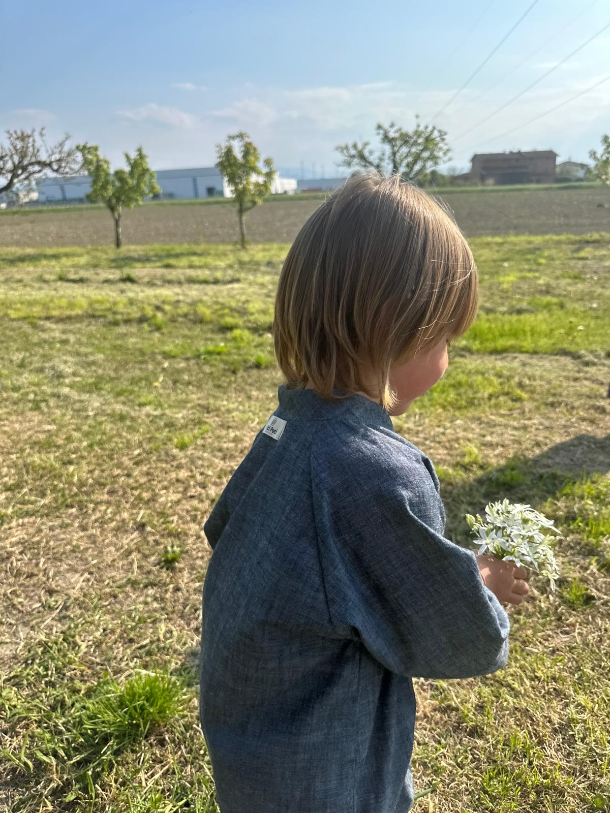 Casacca a maniche corte disegnata pensando a una piccola persona che cresce e alle esigenze della sua età.