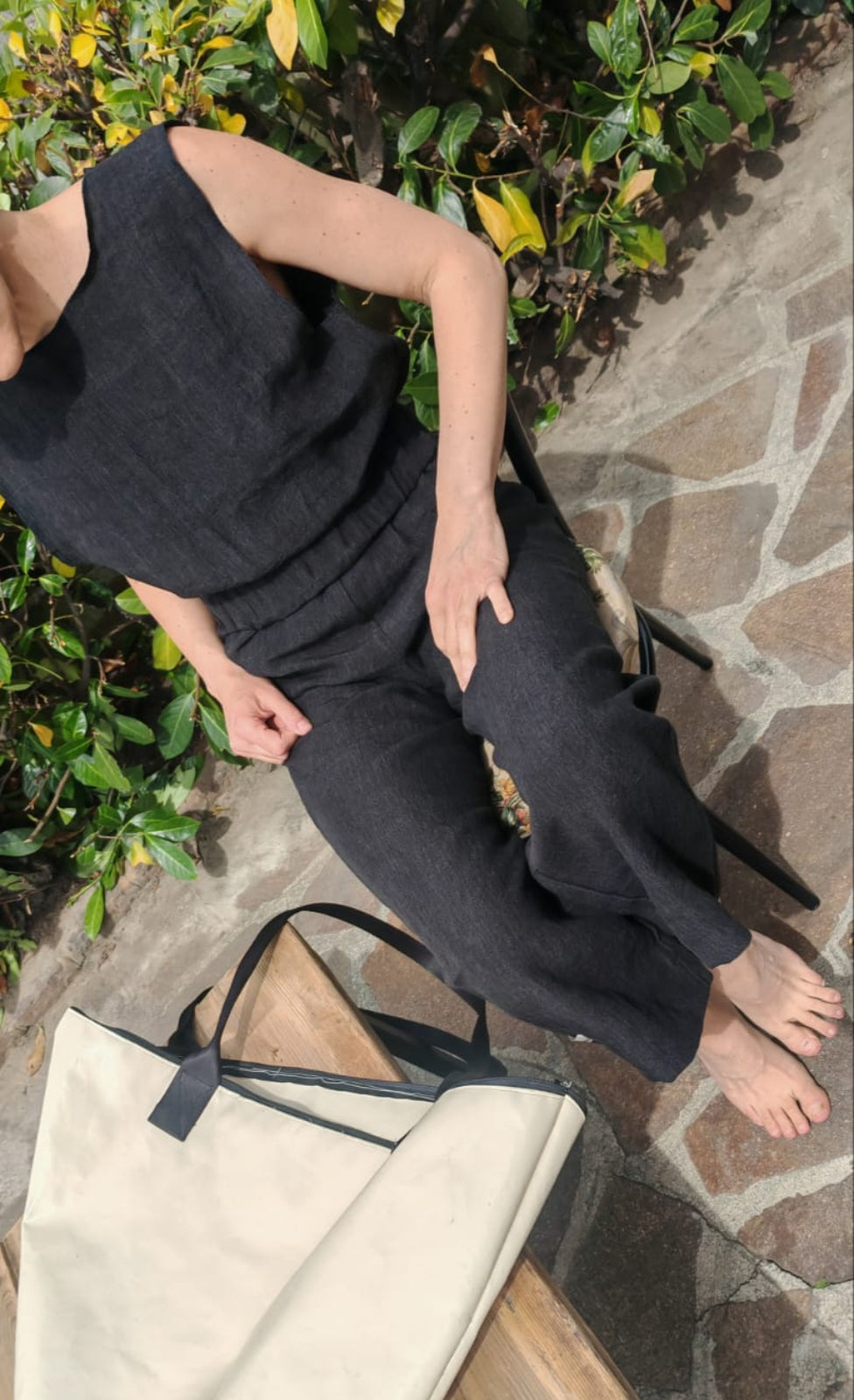 Un completo Casacca e Pantaloni Oversize, dalle linee essenziali ed eleganti, ma pratico ed estremamente comodo.