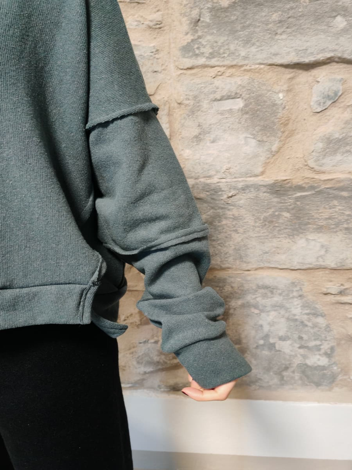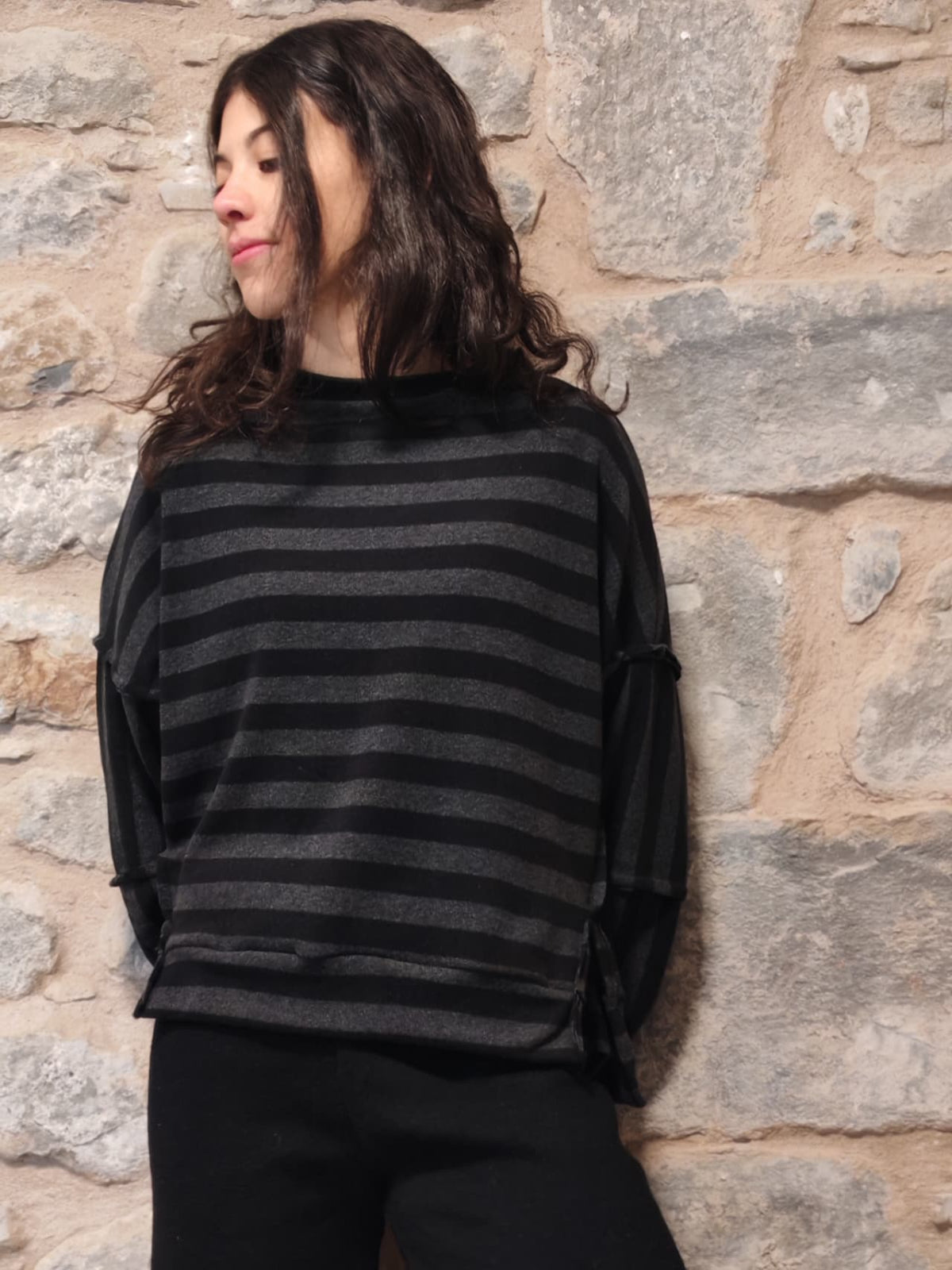 “A pezzi” 70,00€ - (foto Petrolio e Griogio/Nera) tanti pezzi montati insieme, con cuciture più vivaci e spacchetti sui fianchi.
